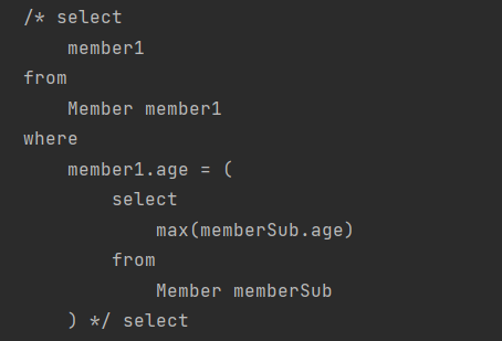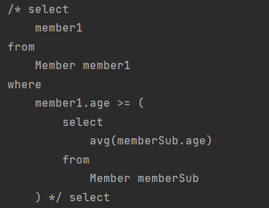 - JPA JPQL 서브쿼리의 한계점으로 from 절의 서브쿼리(인라인 뷰)는 지원하지 않는다. 당연히 Querydsl 도 지원하지 않는다. 하이버네이트 구현체를 사용하면 select 절의 서브쿼리는 지원한다. Querydsl도 하이버네이트 구현체를 사용하면 select 절의 서브 쿼리를 지원한다.