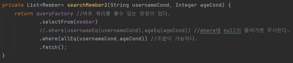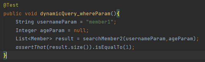 - age,username 값이 null이 올 수도 있다(동적 쿼리를 실행 시켜 주어야한다)