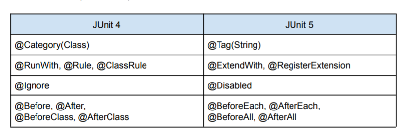 • @Rule은 기본적으로 지원하지 않지만, junit-jupiter-migrationsupport 모듈이 제공하는 @EnableRuleMigrationSupport를 사용하면 다음 타입의 Rule을 지원한다.