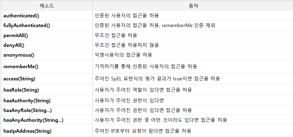 - 위에서부터 아래로 순차적으로 인가 심사를 해주는데 큰 범위가 먼저 오게 되면 큰 범위를 먼저 실행하여 작은 범위가 실행이 안된다.