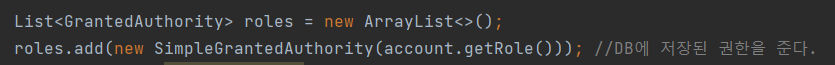 - 권한은 List와 같은 Collection으로 입력받는데.
