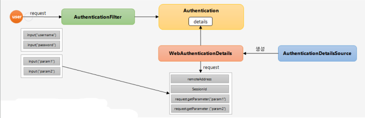 - WebAuthenticationDetails 안에는 클라이언트에게 입력받은 여러 값들이 저장되어 있다.
