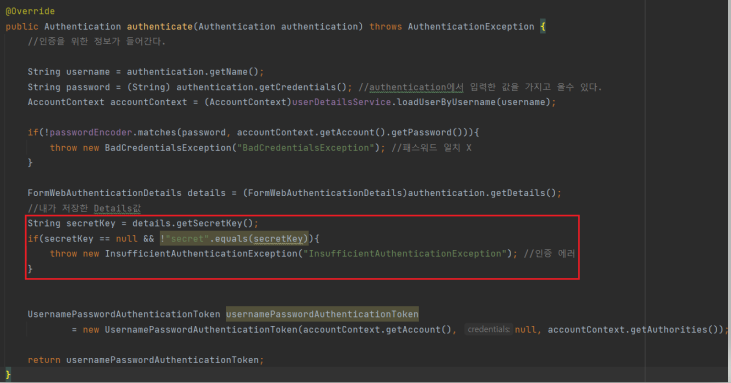- WebAuthenticationDetails 같은 경우 AuthenticationDetailsSource가 생성해 준다.