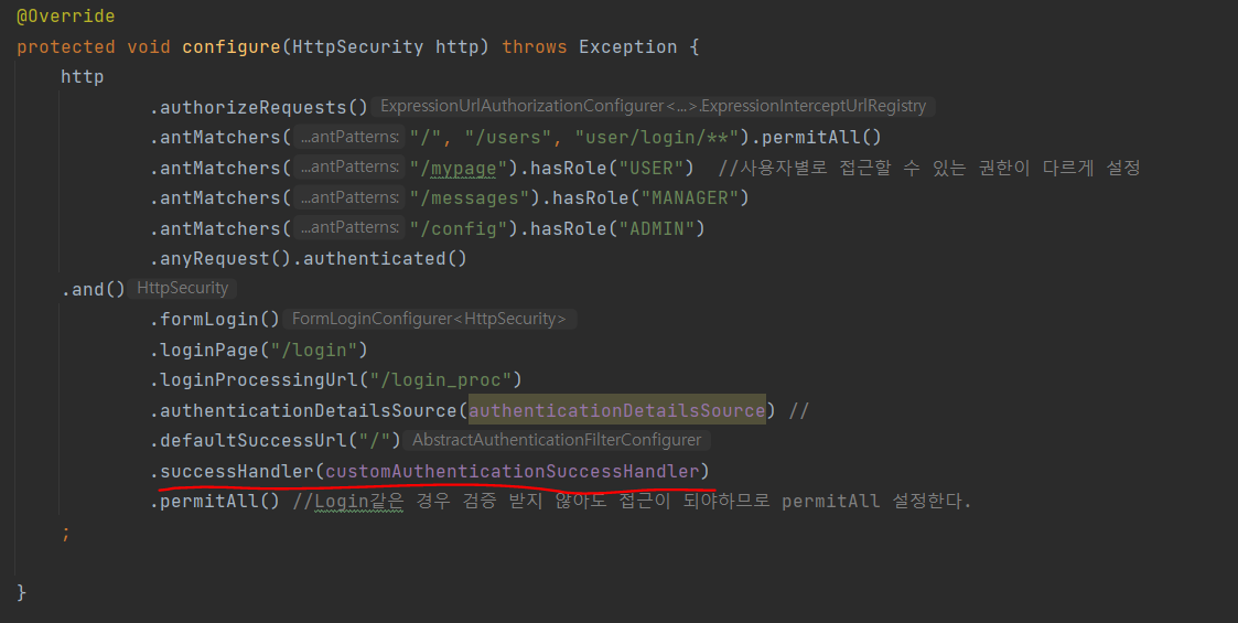 • 인증 성공시 Custom한 SuccessHandler를 타게 할 수 있다.
