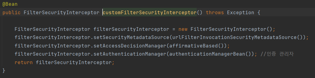 - 사용자의 요청을 FilterSecurityInterceptor가 받는다.