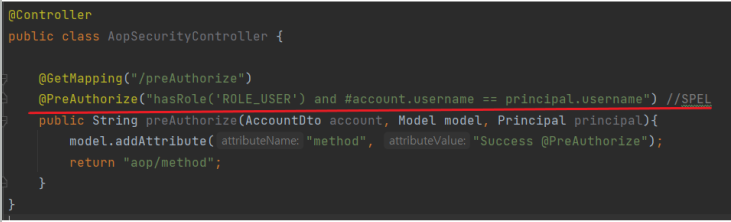 - 해당부분을 Advice로 등록하여 후에 해당 메소드로 접근하였을 경우, 해당 Advice가 동작하여 권한 체크를 한다.