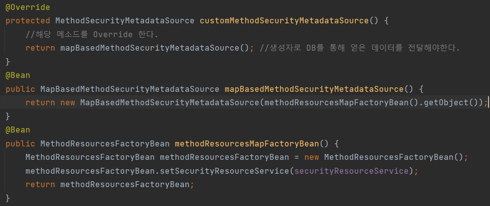 - DB로부터 ResourceMap을 만들어 생성자로 MapBaseMethodSecurityMetadataSource에 전달하면 된다.