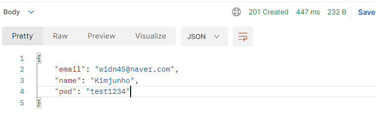 - User등록 컨트롤러에서 Dto -> ReponseUser로 변환하여 반환한다.