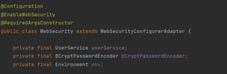 • 이전에 등록한 Bean userService와 bCryptPasswordEncoder를 주입한다.