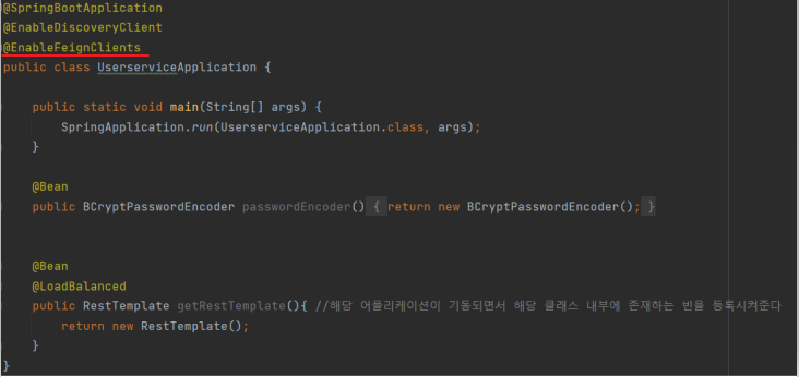 - @EnableFeignClients 어노테이션 추가