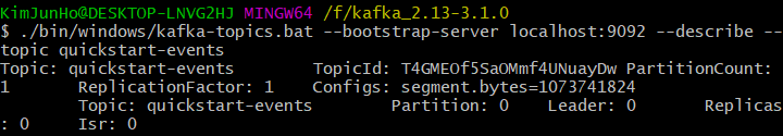 - ./bin/windows/kafka-topics.bat --bootstrap-server localhost:9092 --describe --topic quickstart-events