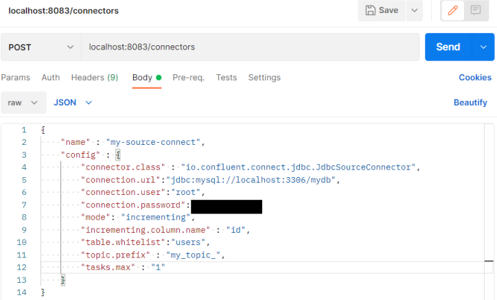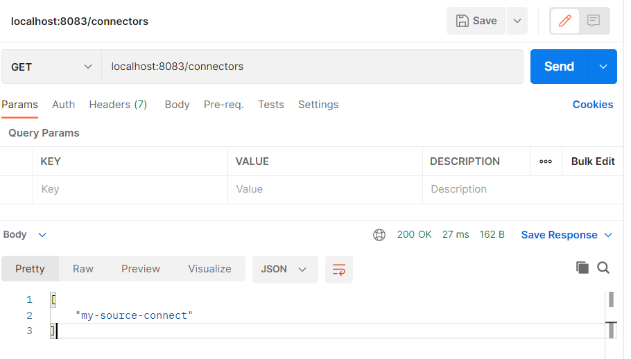 - 현재 localhost의 8083 포트가 Kafka Source Connectors이다.