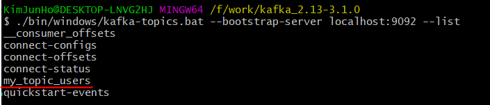topic에 변경된 데이터가 들어간 것을 확인할 수 있다.