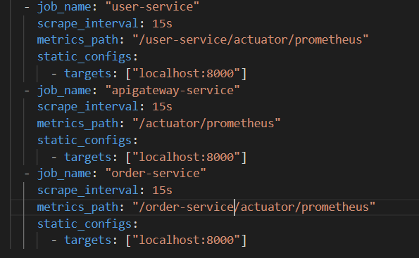 prometheus의 yml 설정파일 수정