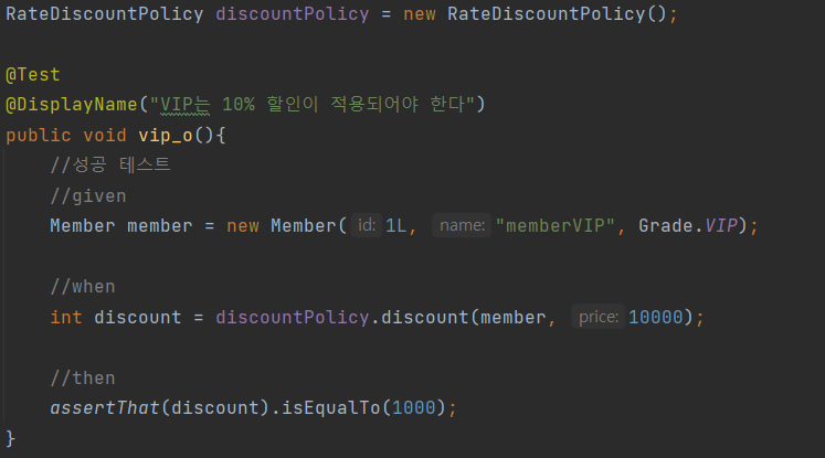 • 성공 테스트(10% 할인이 되어야한다)