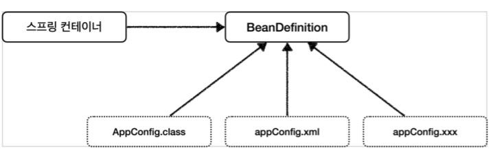 - 스프링 컨테이너는 자바 코드인지, XML인지 몰라도 된다. 오직 BeanDefinition만 알면 된다.
