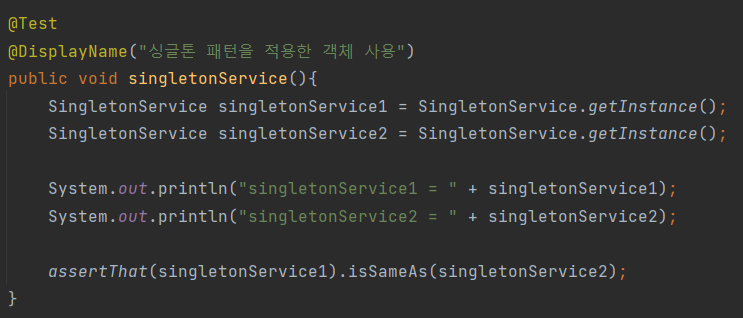 싱글톤 패턴 테스트