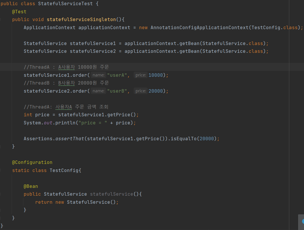 - 진짜 공유 필드는 조심해야 한다! 스프링 빈은 항상 무상태(stateless)로 설계하자