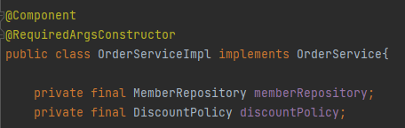 - 막상 개발을 해보면, 대부분이 다 불변이고, 그래서 다음과 같이 생성자에 final 키워드를 사용하게 된다.