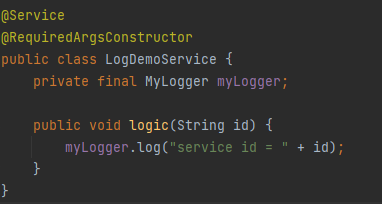 - 가짜 프록시 객체는 내부에 진짜 myLogger를 찾는 방법을 알고 있다.