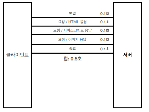 - TCP/IP 연결을 새로 맺어야 함 - 3 way handshake 시간 추가