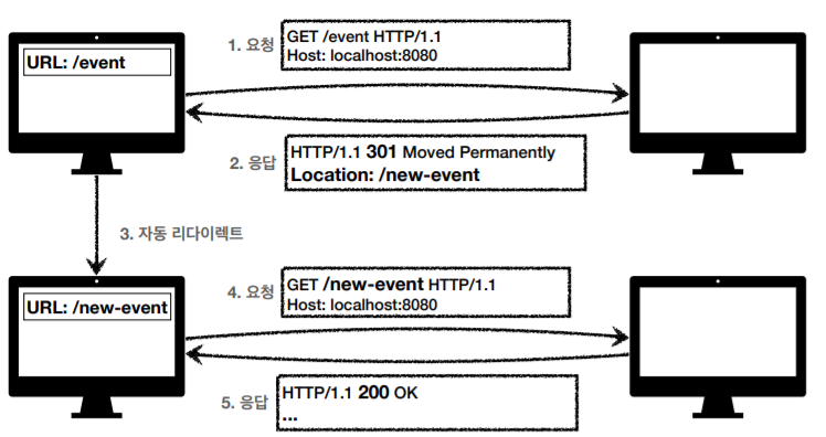 - 영구 리다이렉션 - 특정 리소스의 URI가 영구적으로 이동