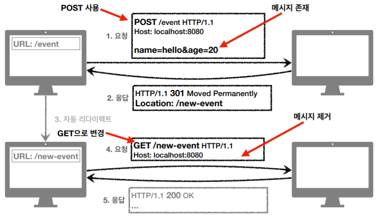 - 리다이렉트시 요청 메서드가 GET으로 변경