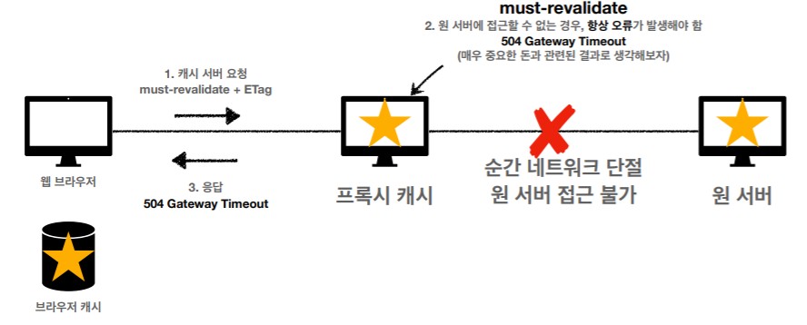 - 데이터는 캐시 해도 되지만, 항상 원 서버에 검증하고 사용(이름에 주의!)