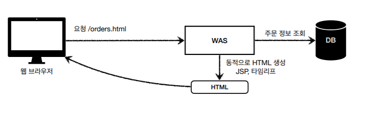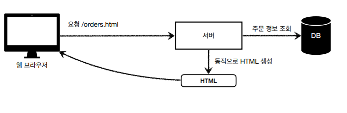 - HTML 최종 결과를 서버에서 만들어서 웹 브라우저에 전달