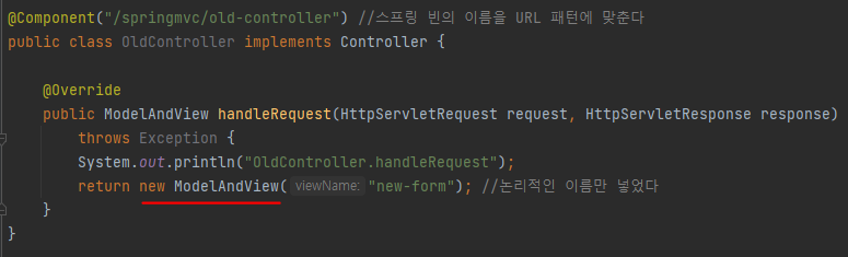 - 핸들러 어댑터를 통해 new-form이라는 논리 뷰 이름을 획득한다.
