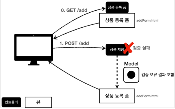 • 고객의 검증에 올바르지 않은 데이터를 입력하게 된다면 리다이렉트 하는 것이 아닌 다시 상품 등록 폼을 보여주고 어떠한 값이 잘못 입력했는지를 알려주어야 한다