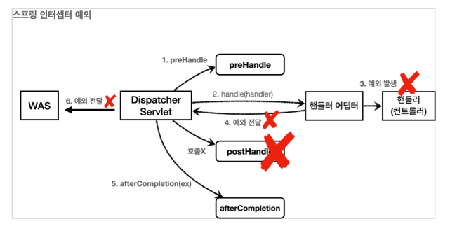 - 예외가 발생하면 afterCompletion() 에 예외 정보( ex )를 포함해서 호출된다