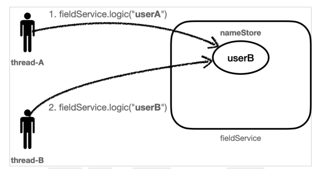 userA thread 처리 중 nameStore 값을 바꾸는 userB thread