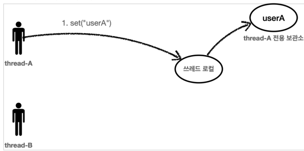 - 스레드 로컬은 해당 스레드만 접근할 수 있는 특별한 저장소를 말한다