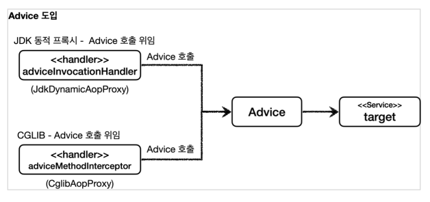 - 두 기술을 함께 사용할 때 부가 기능을 제공하기 위해 JDK 동적 프록시가 제공하는 InvocationHandler와 CGLIB가 제공하는 MethodInterceptor를 각각 중복으로 만들어서 관리해야 할까?
