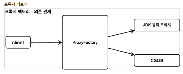 스프링은 동적 프록시를 통합해서 편리하게 만들어주는 프록시 팩토리( ProxyFactory )라는 기능을 제공한다.