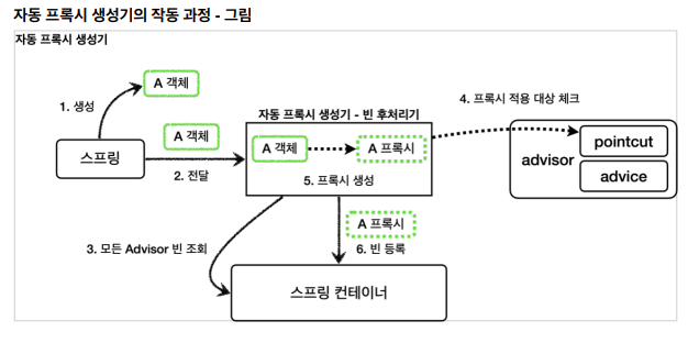 - 이름 그대로 자동으로 프록시를 생성해주는 빈 후처리 기이다.