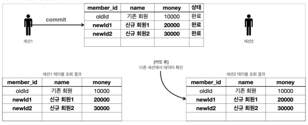 - Commit을 통해 반영하게 되면 모든 세션에서 반영된 결과를 확인할 수 있다.