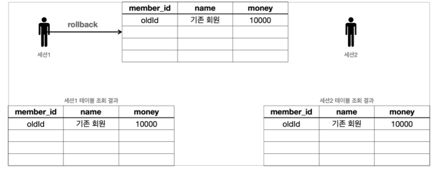- 롤백을 호출해서 트랜잭션을 시작하기 전 단계로 데이터를 복구해야 한다.
