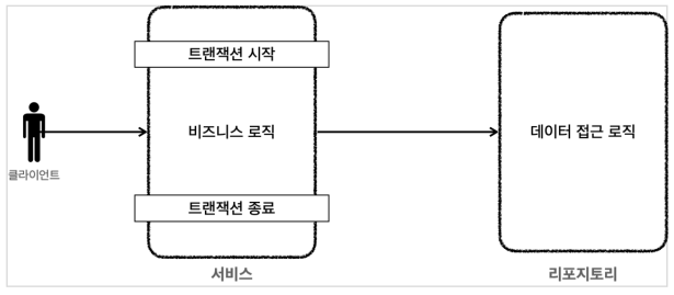 트랜잭션 템플릿 덕분에 트랜잭션을 처리하는 반복 코드는 해결할 수 있었다. 하지만 서비스 계층에 순수한 비즈니스 로직만 남긴다는 목표는 아직 달성하지 못했다.